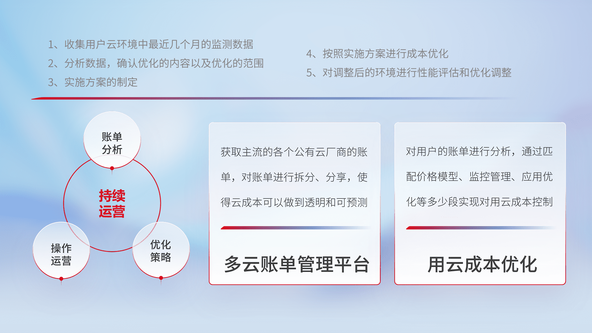 监控业务系统资源开销,,对资源的消耗精确计量,,实现费用的透明化管理,,不断提升资源使用率,,,,调整资源购买方式,,,,降低资源费用成本,,用云成本可预测、、、用云费用可优化,,,,云资源配额有据可依。。。。